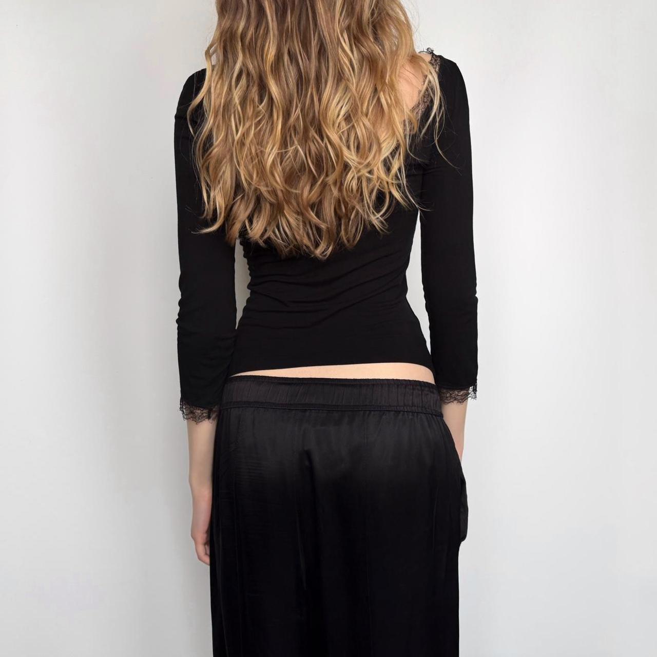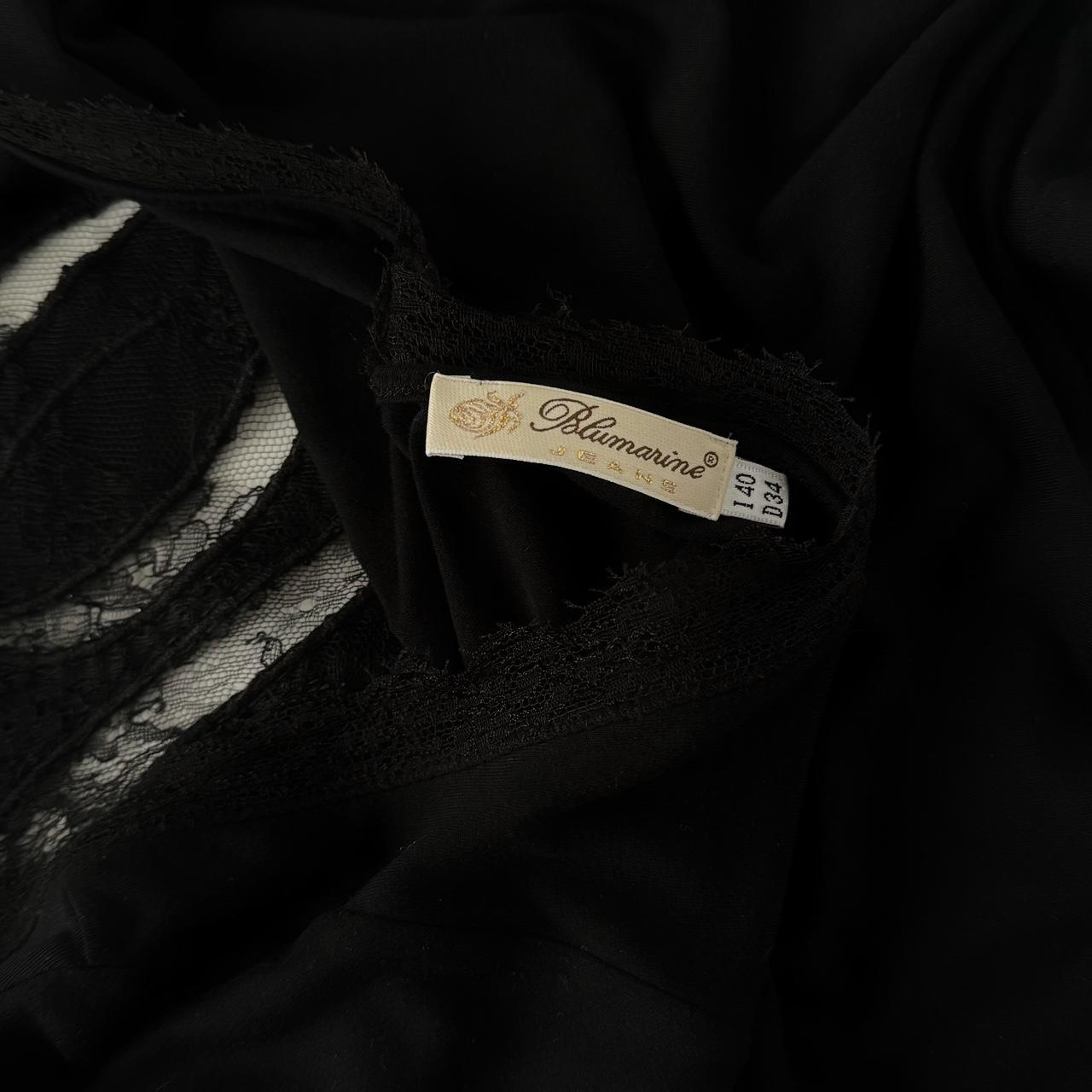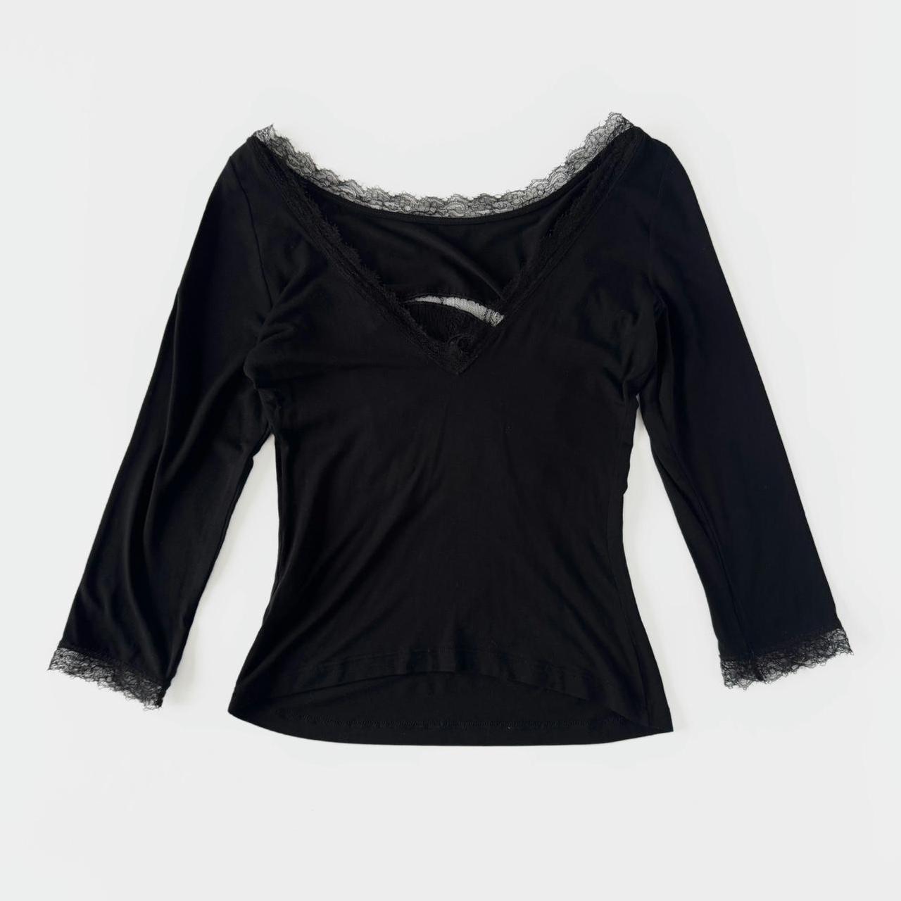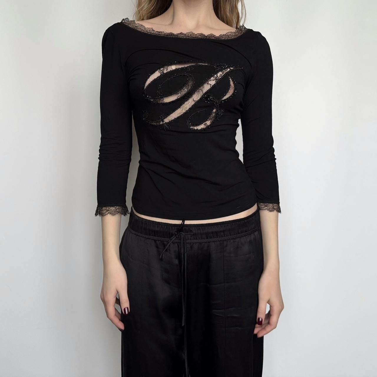 blumarine jeans vintage 3/4 sleeve top. black colour and cute lace, ‘B’ letter infront and beautiful triangle cut out on the back.