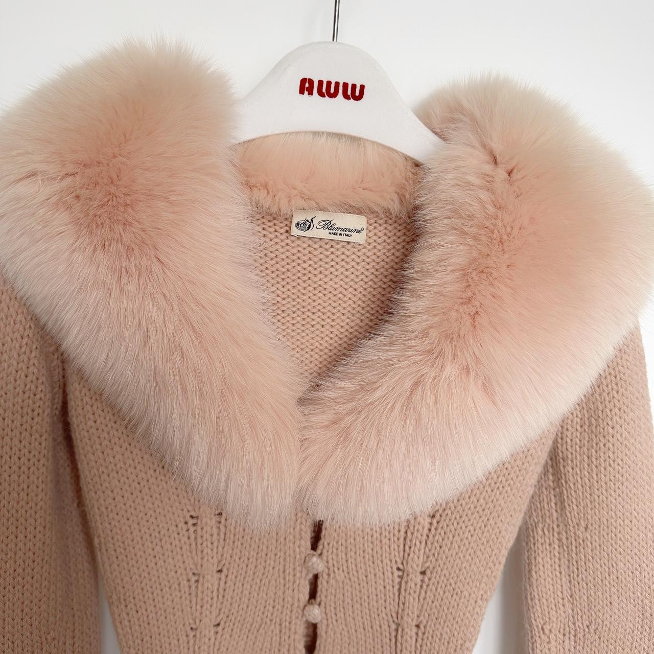 vintage knitted top with genuine fur collar. beautiful dusty pink colour and knitted buttons infront