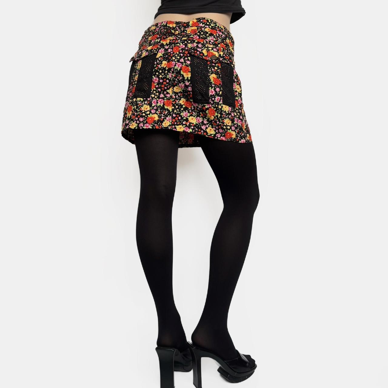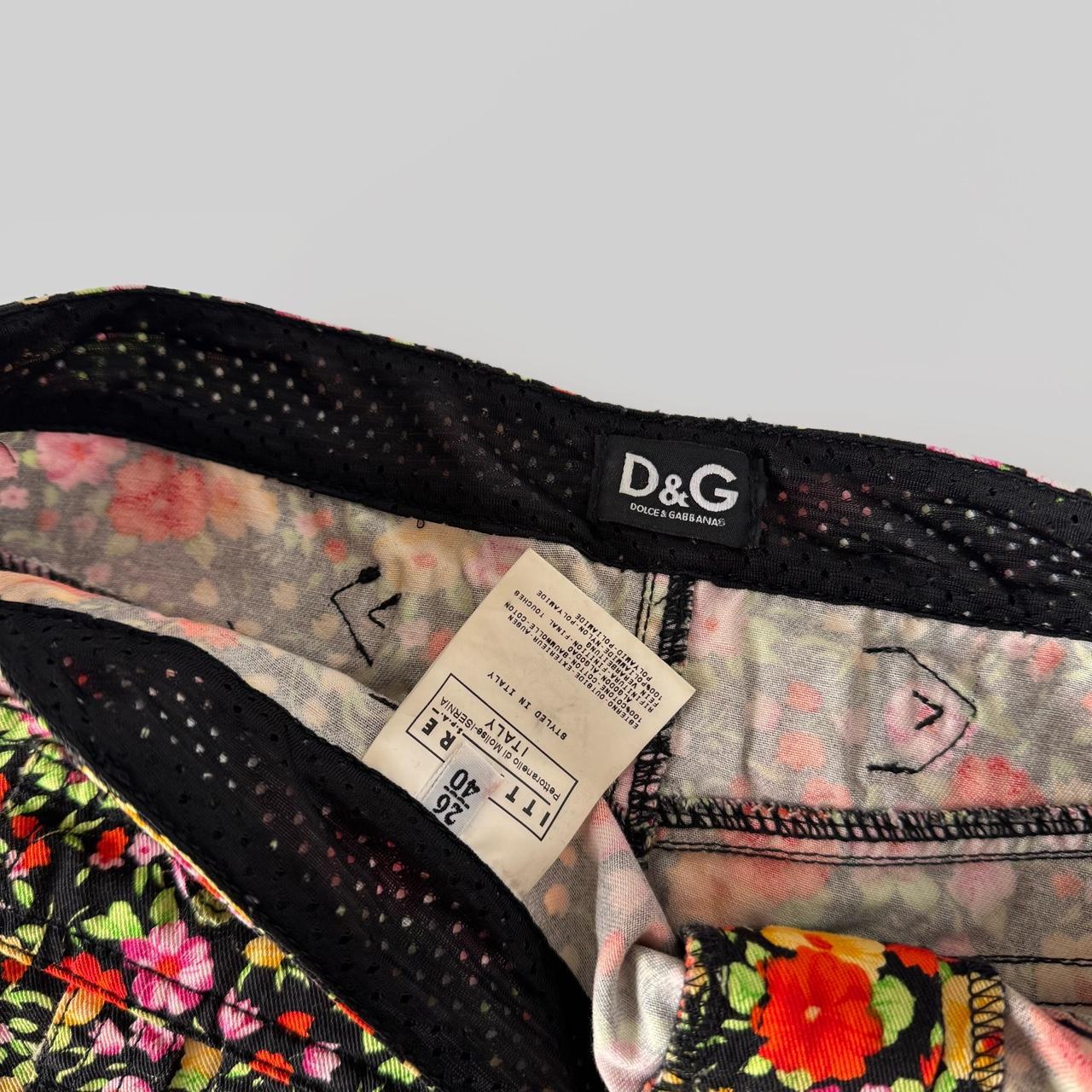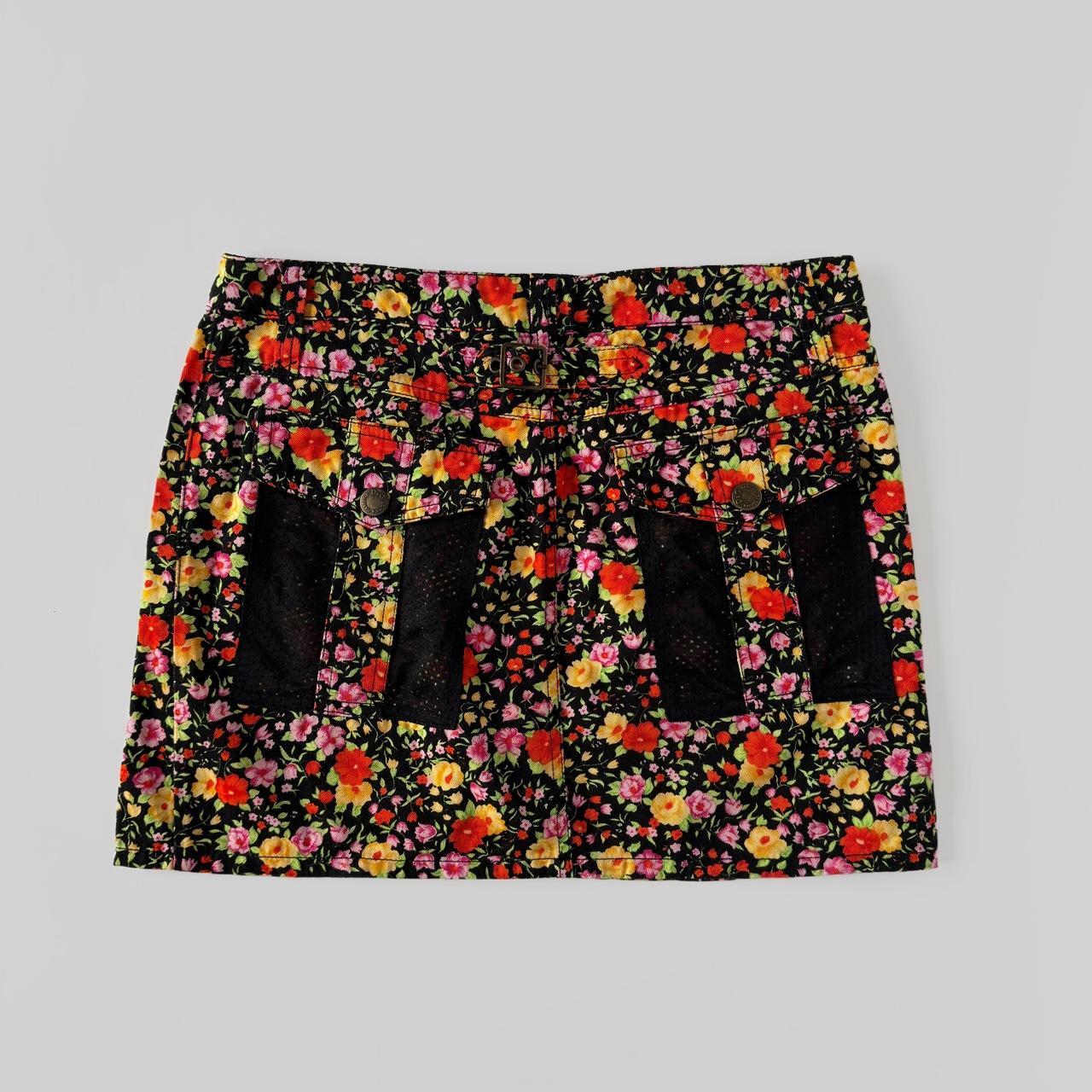 dolce and gabbana x d&g spring/summer 2003 line. vintage mini skirt, floral material and contrasting black pockets