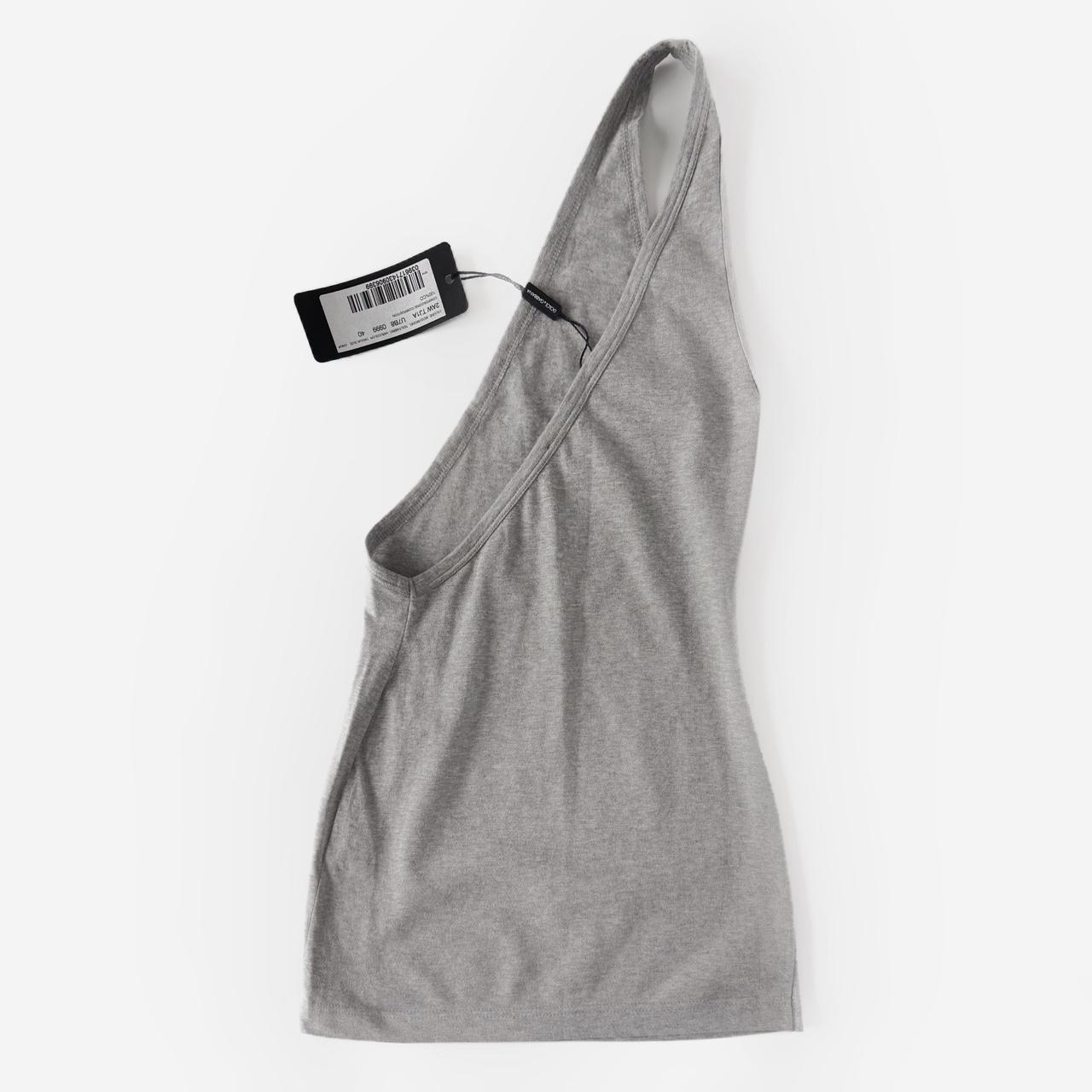 spring/summer 2003 one shoulder micro-mini dress, grey cotton material
