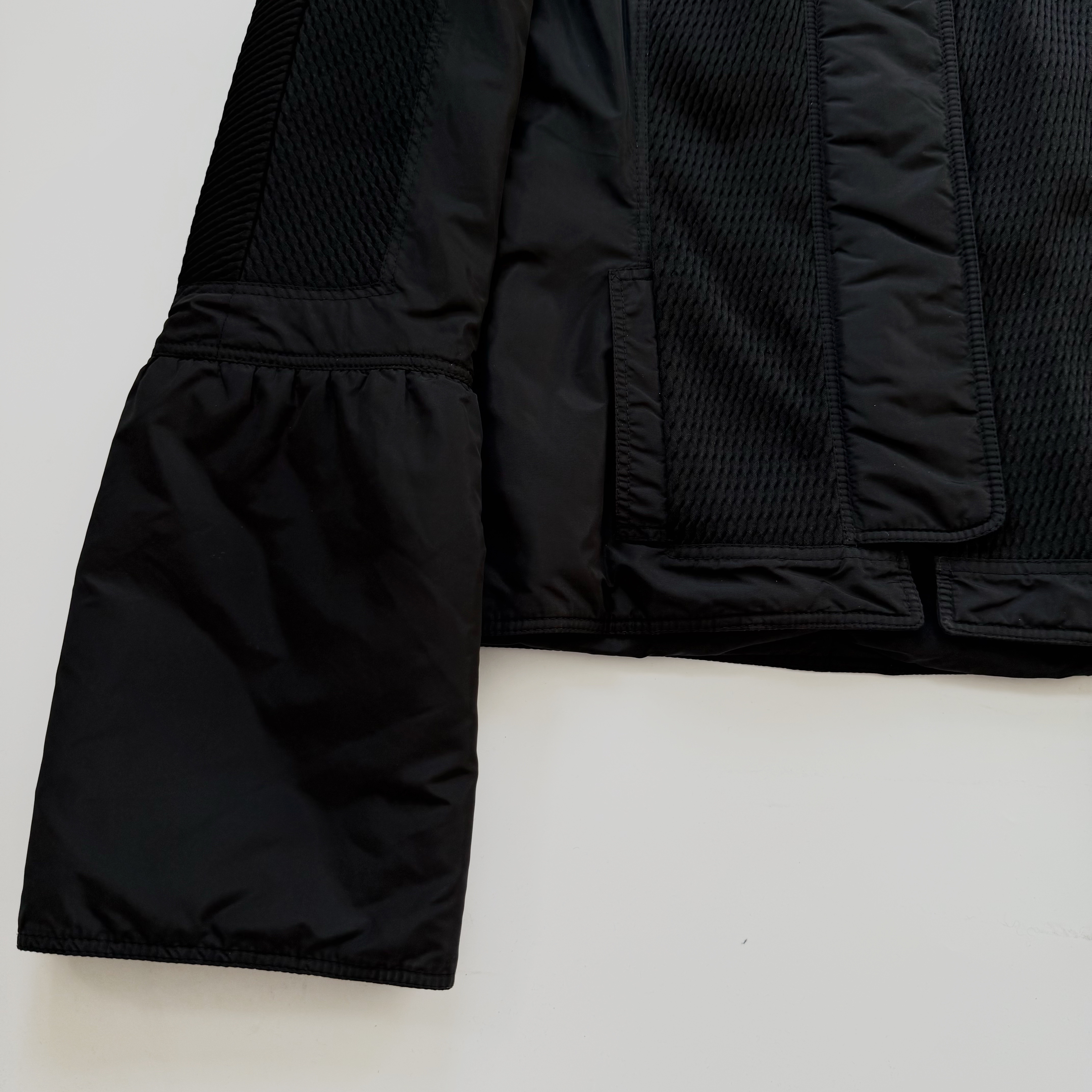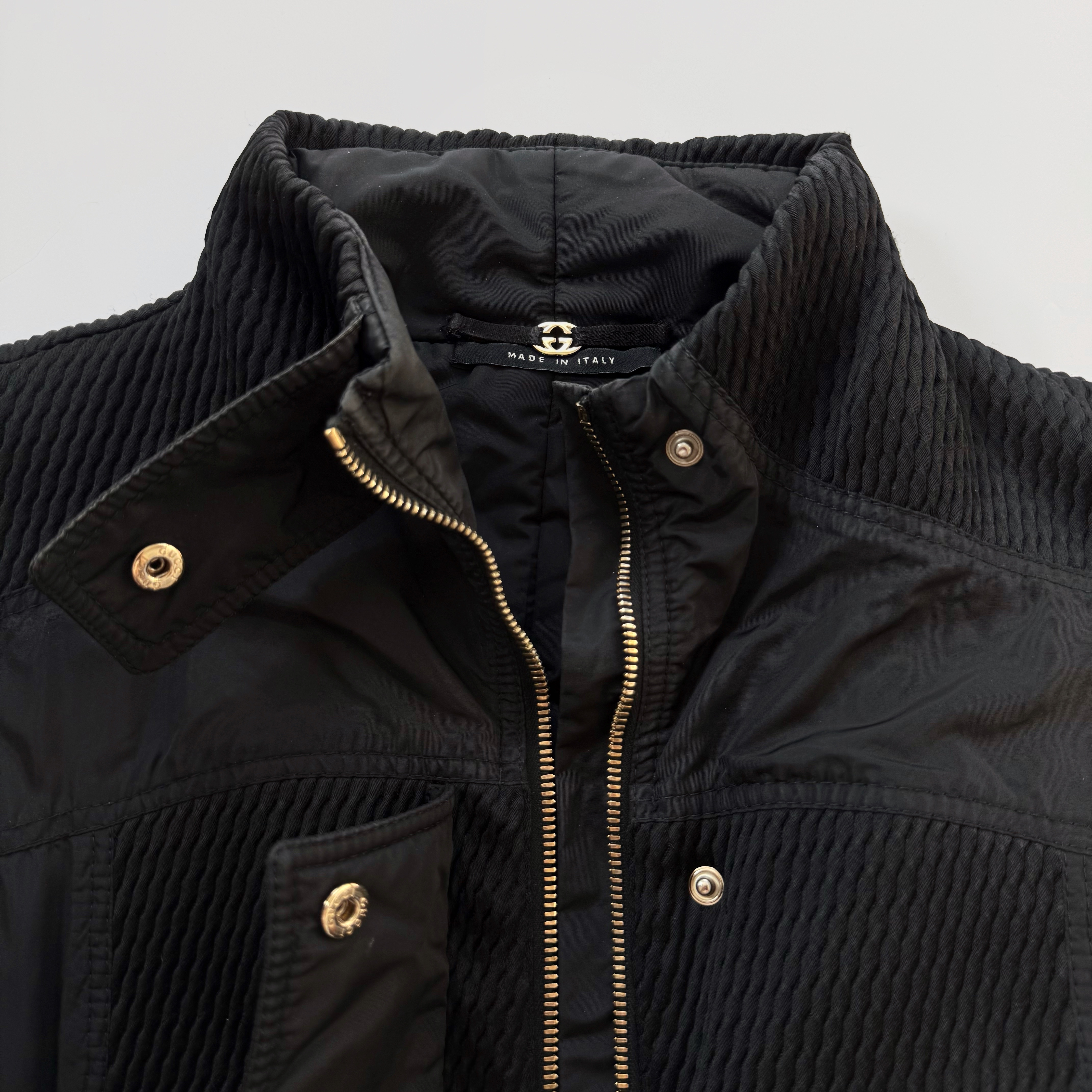 black nylon moto jacket with golden branded furniture, flared sleeves and slightly cropped fit. perfect silhouette!