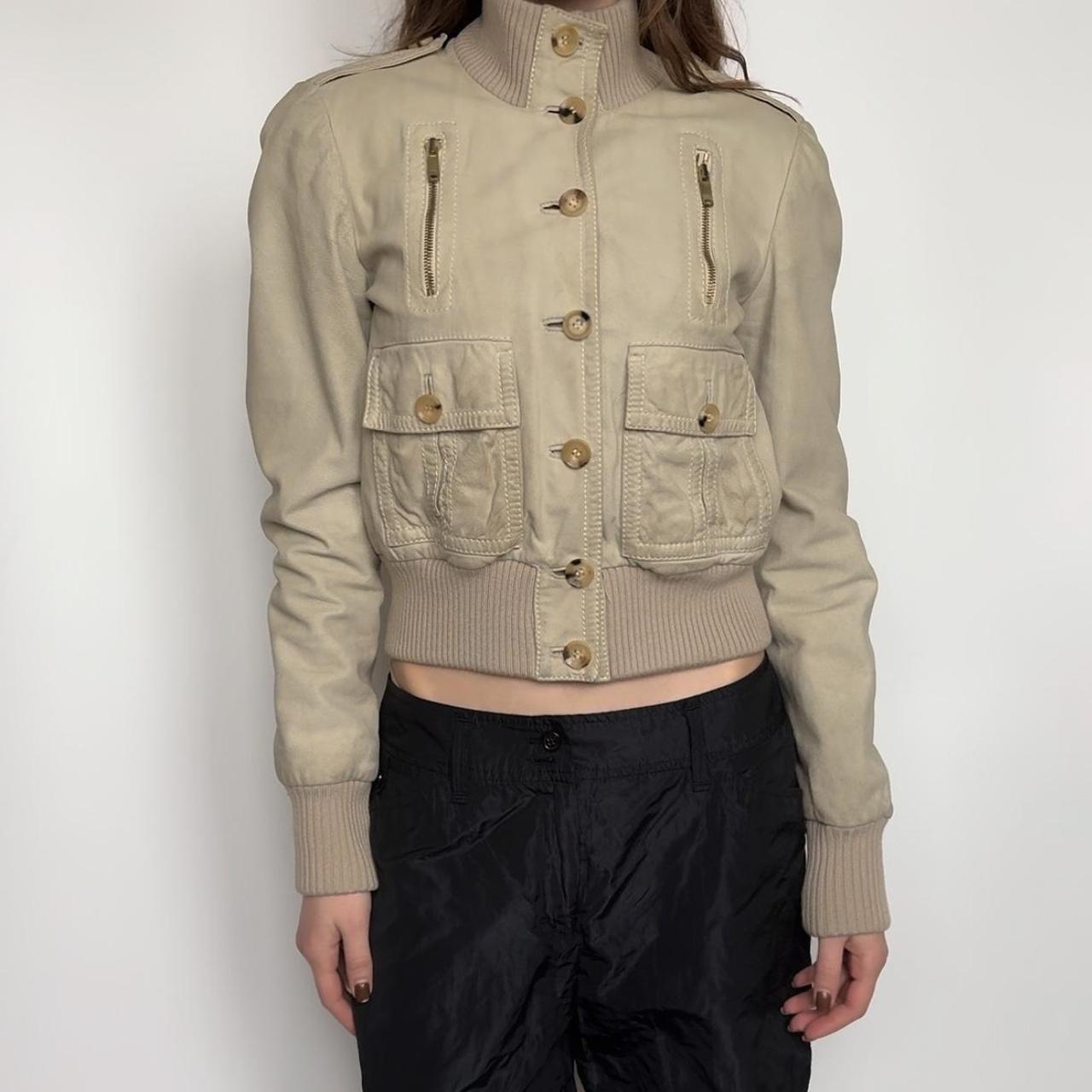light cream leather material and golden furniture by riri. this jacket was named as the ‘madonna jacket’, since Madonna was wearing it in different colour way during her 2006 confessions european promo tour