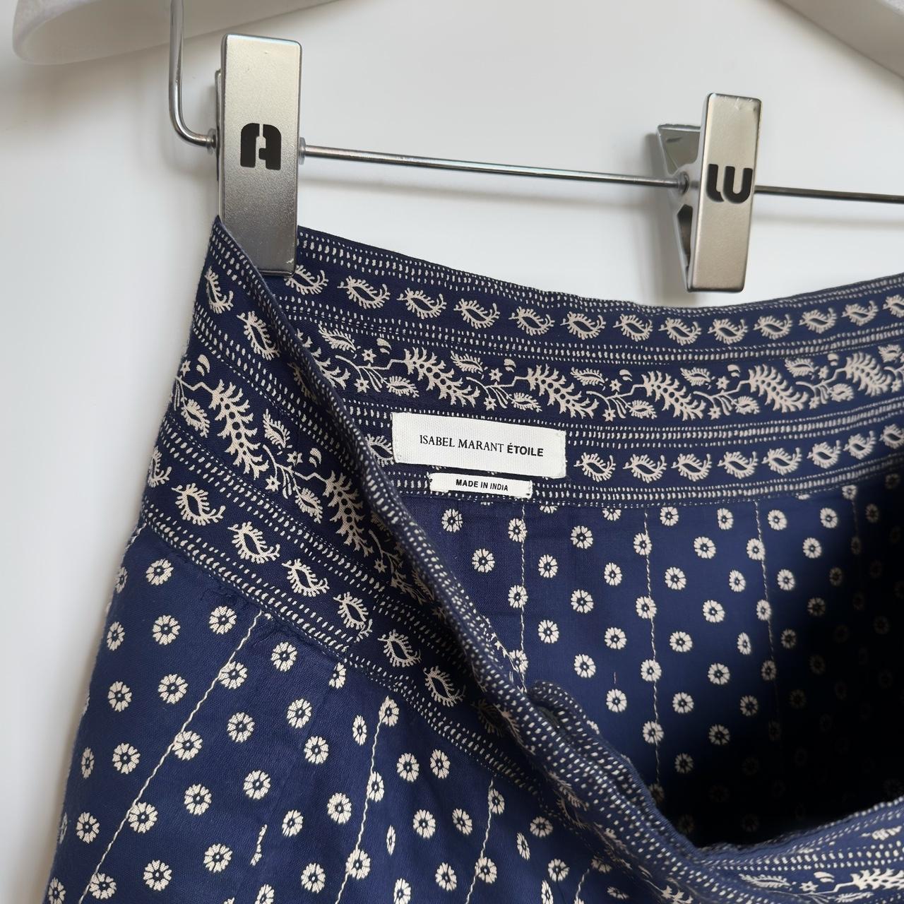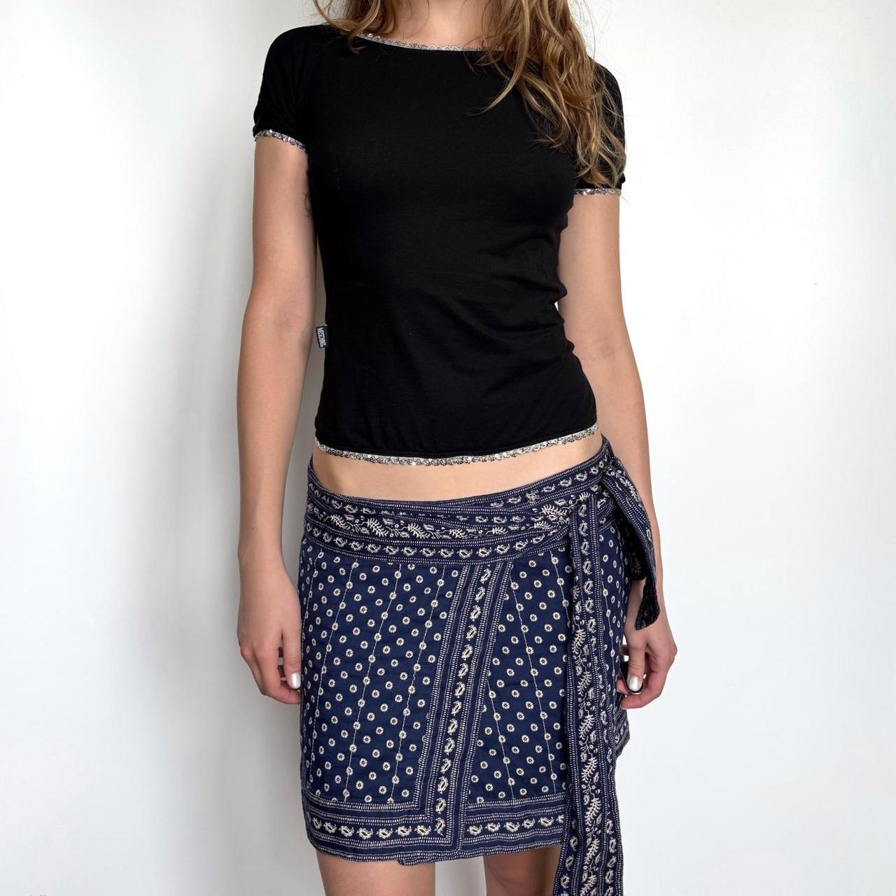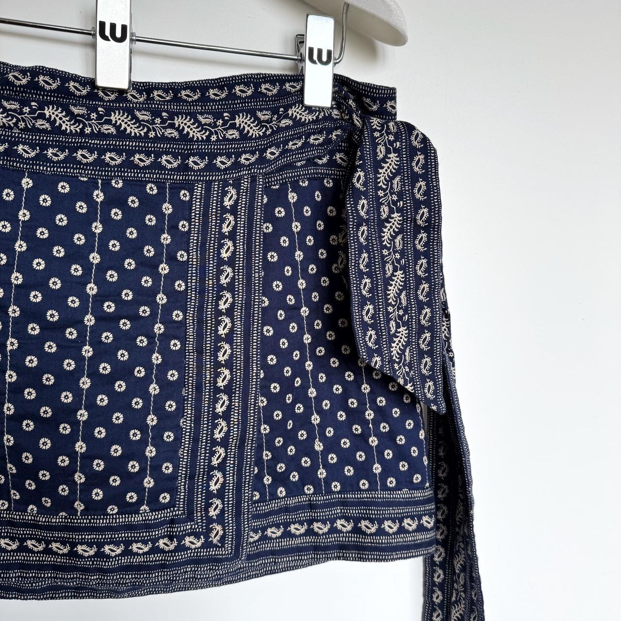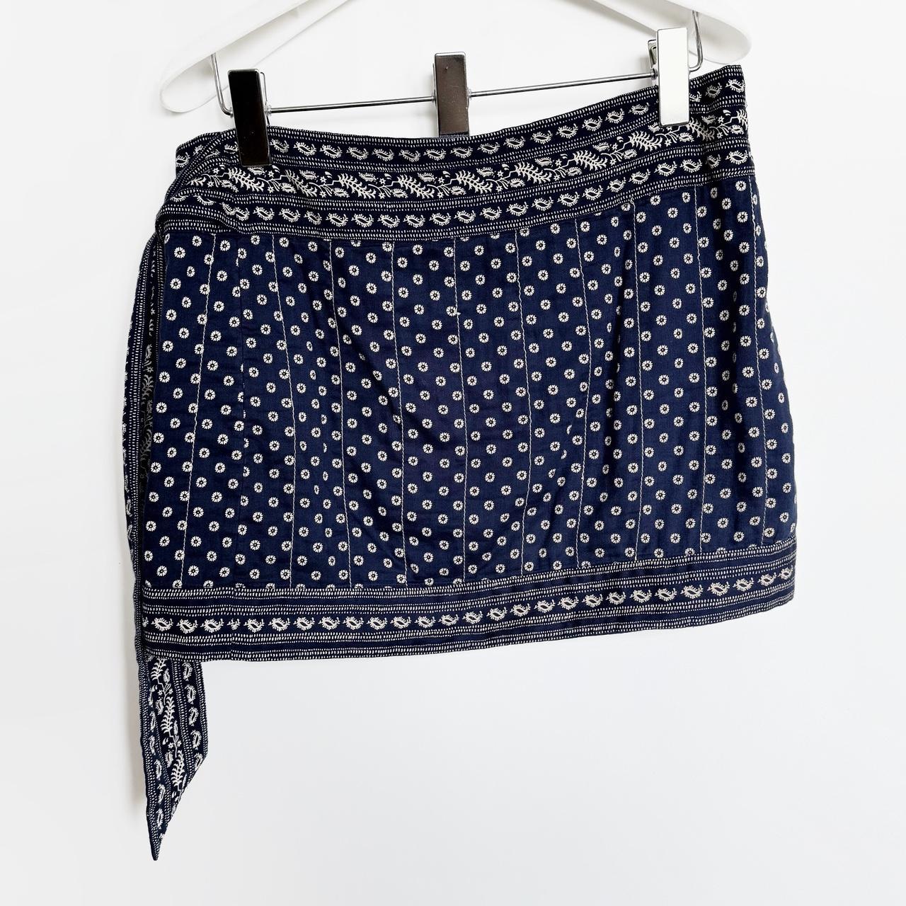 archive cotton mini wrap up skirt. navy material with white paisley print