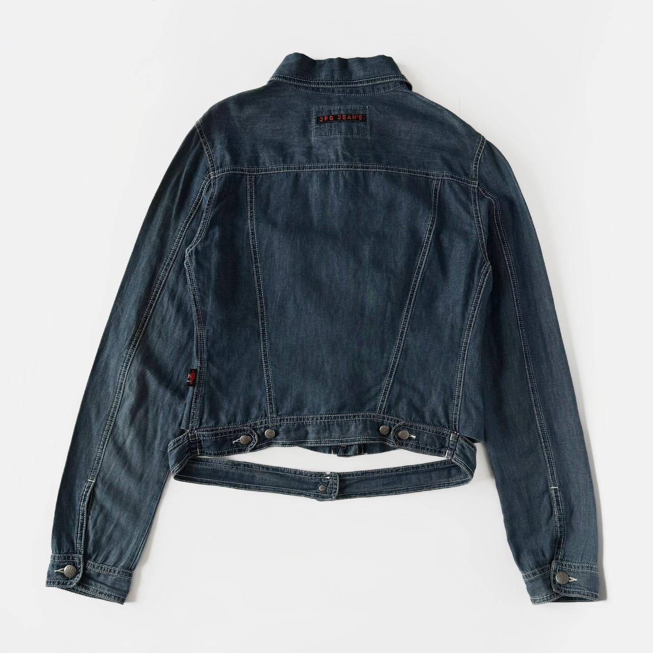 jean paul gaultier denim top with cut outs and multiple buttons. p.s. we have the matching maxi skirt from the same line - check our store!