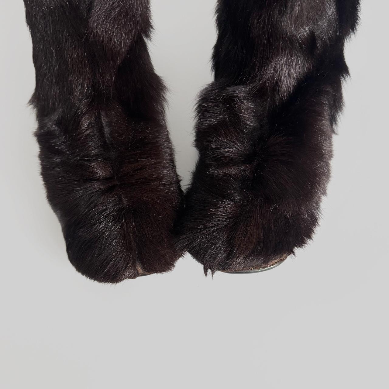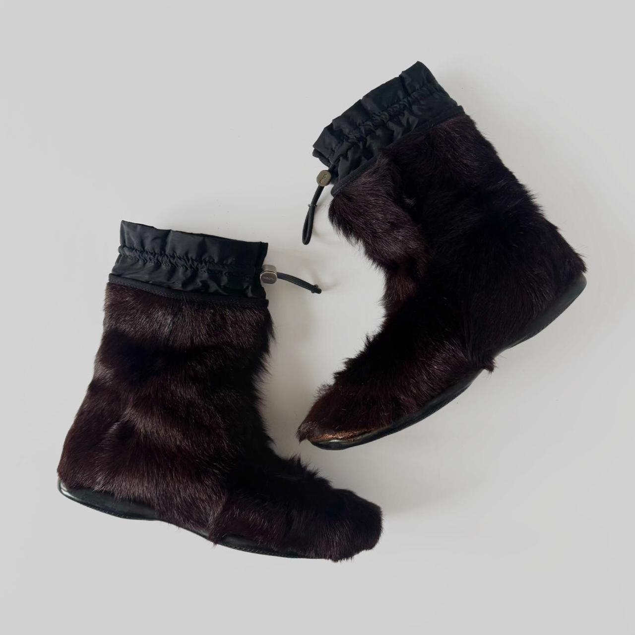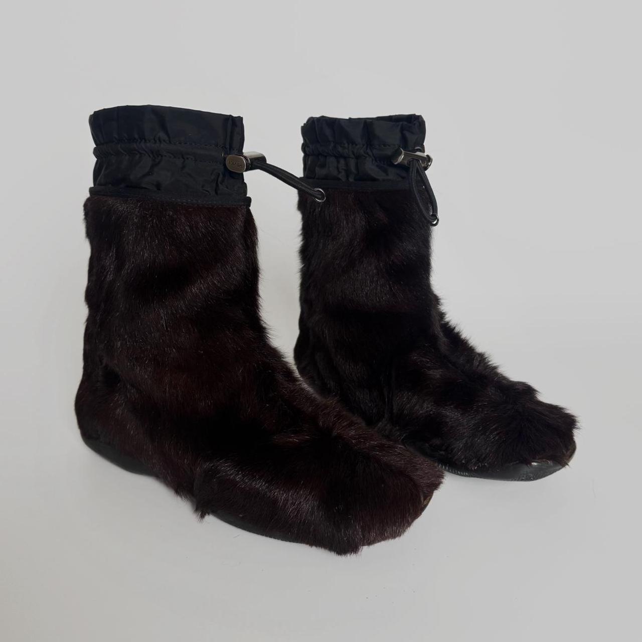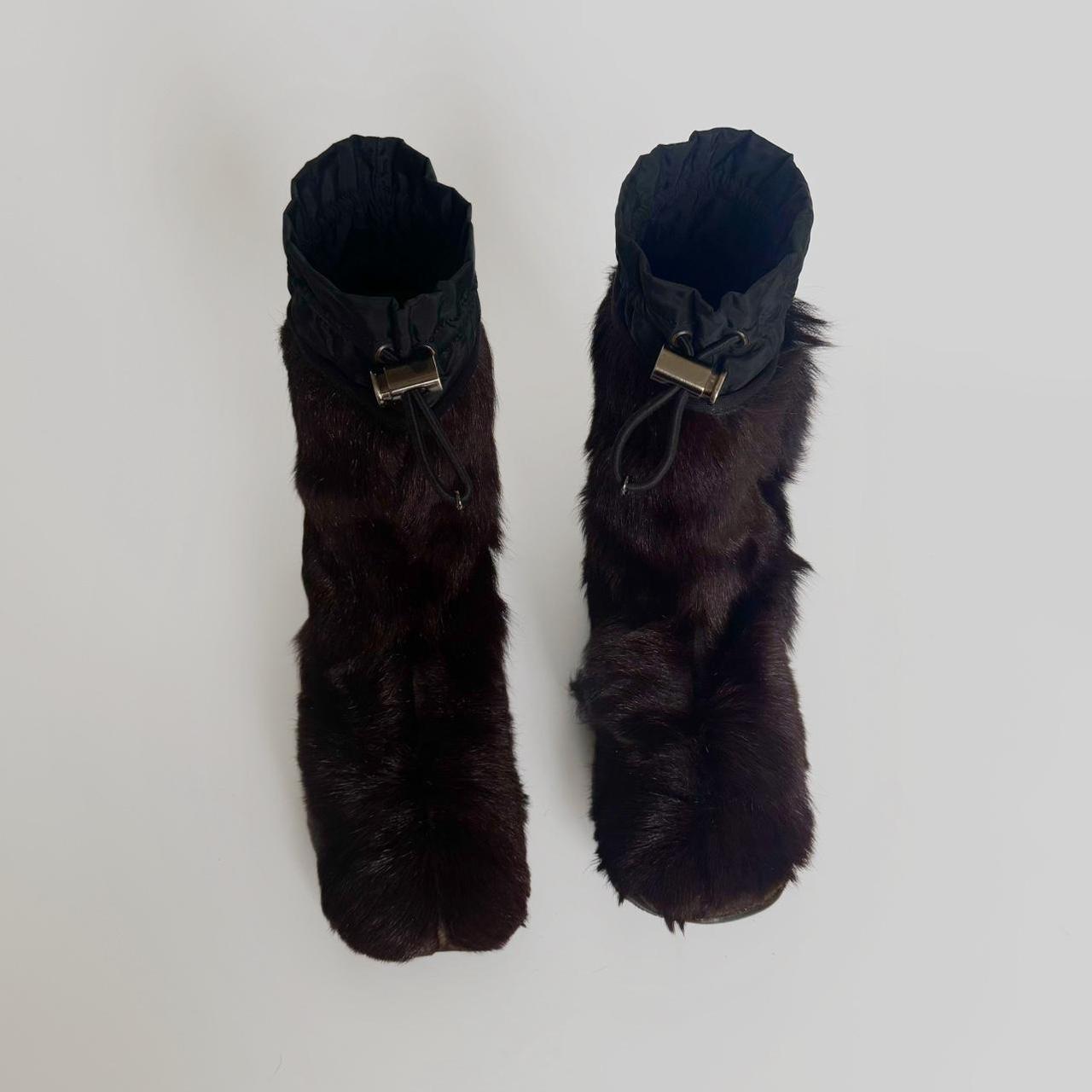 archive prada fur boots from f/w 1999 line. dark brown fur & black waterproof nylon parts. love the way they remind of tabi because of the fur & stitching on the toes