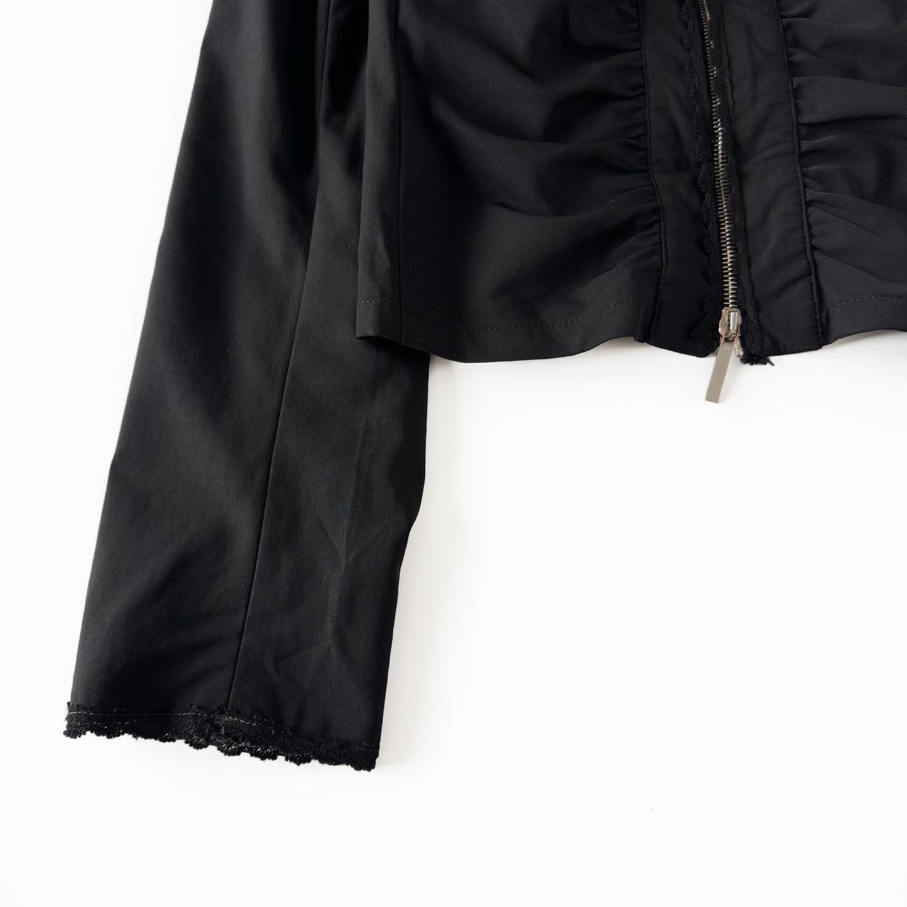 vintage black light-weight jacket, silver metallic lampo furniture and ruffled elements