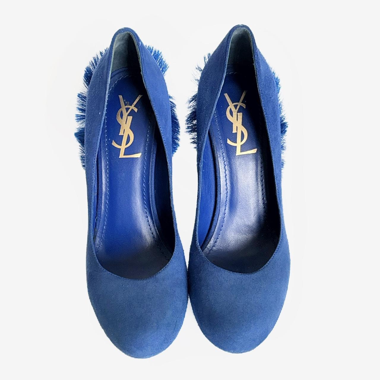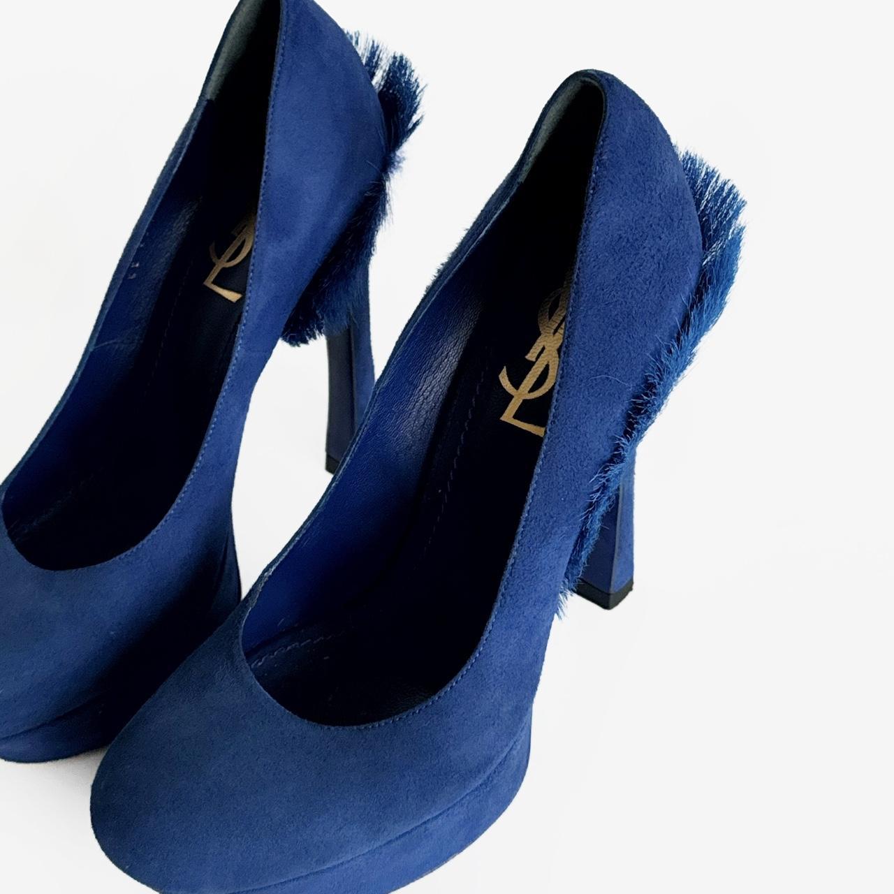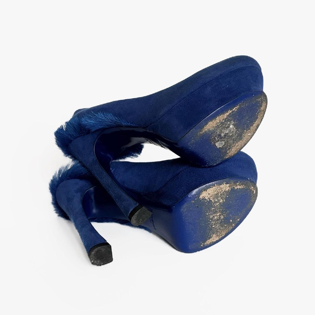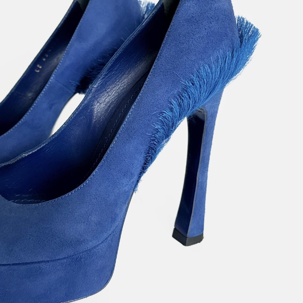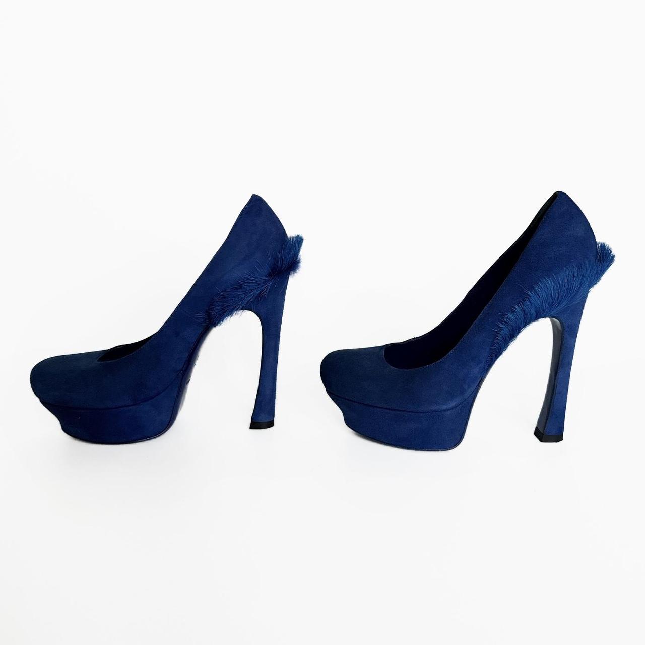 archive heels from fall/winter 2010 - seen on the runway. electric blue suede and fur elements on the back